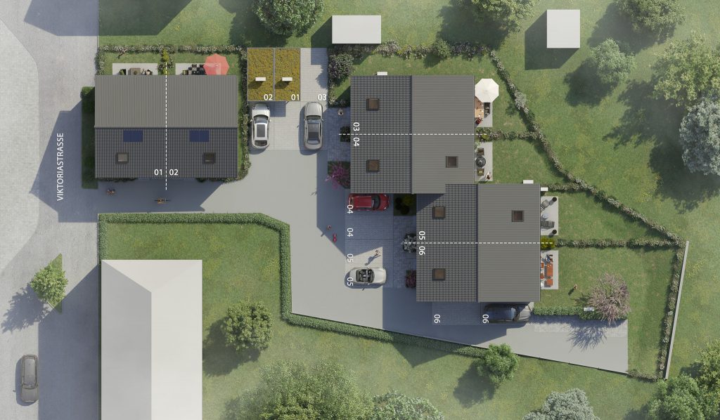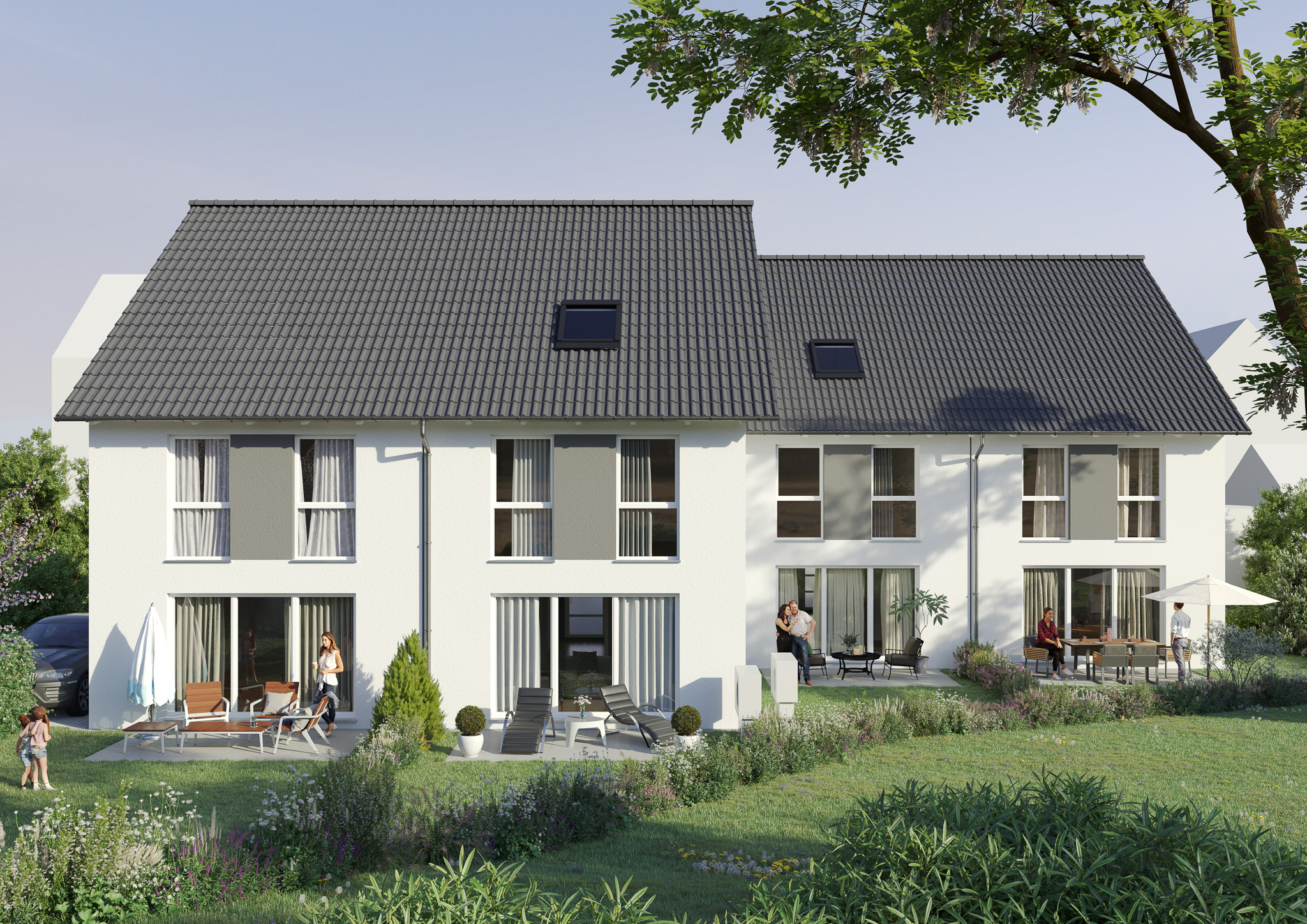 - Komplettausstattung: Jedes Haus verfügt über Terrasse, Garten, Keller und 2 Stellplätze.