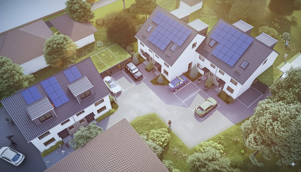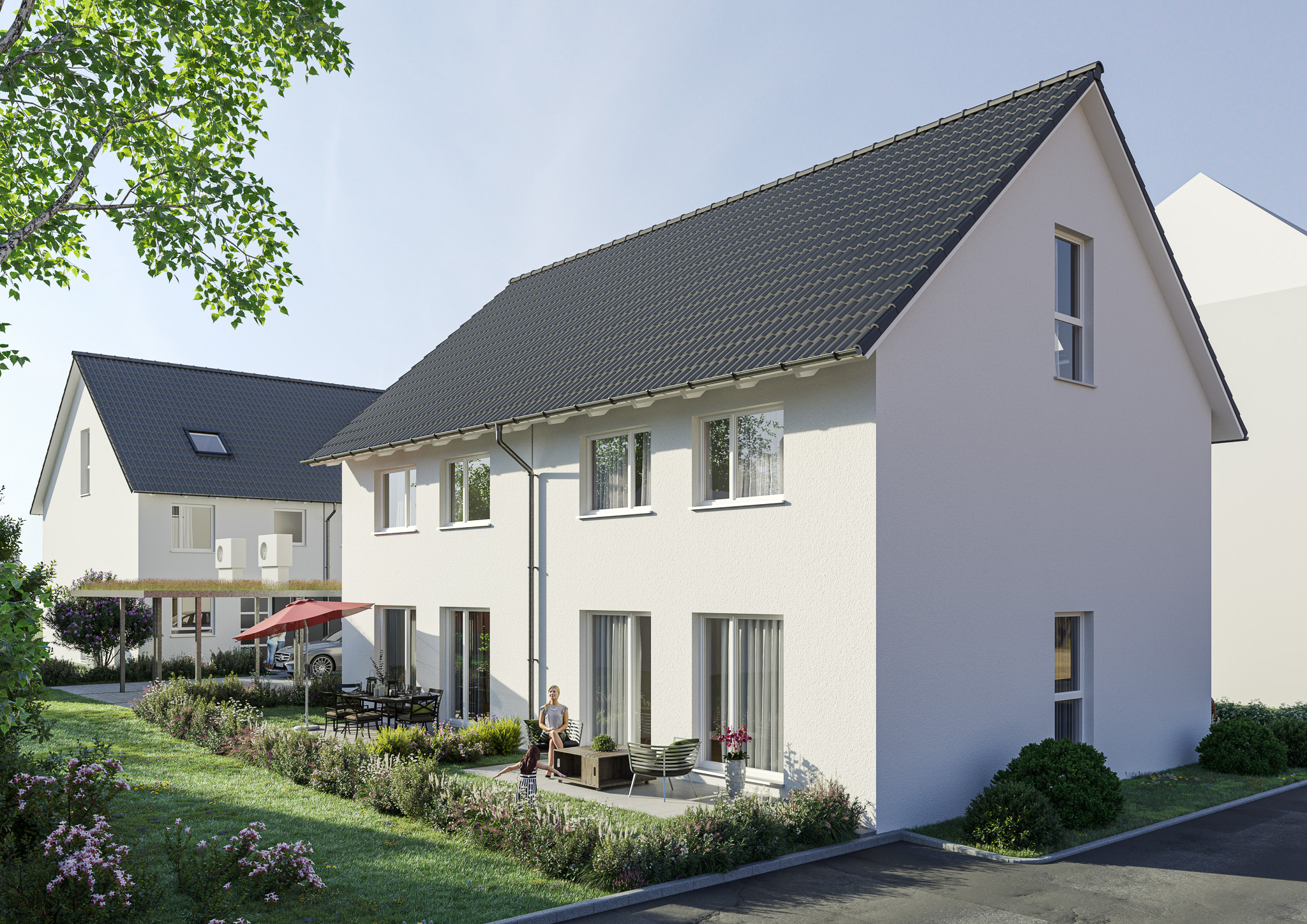 - Niedrigenergiehäuser: Luft-Wasser-Wärmepumpe, Fußbodenheizung, PV-Anlage, QNG-Nachhaltigkeits-Zertifikat