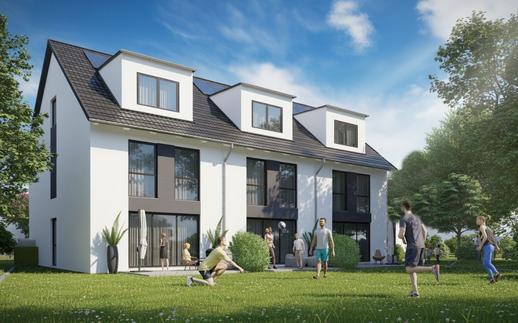 - Hochwertige Grundausstattung: Jedes Haus wird standardmäßig mit Keller, voll ausgebautem Dachgeschoss, Fußbodenheizung, Parkett und Fenstern in Anthrazit realisiert, wobei wir viel Raum für Ihre individuellen Gestaltungswünsche lassen.